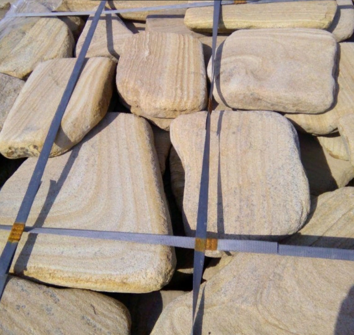 Песчаник пластушка галтованный желтый с рисунком