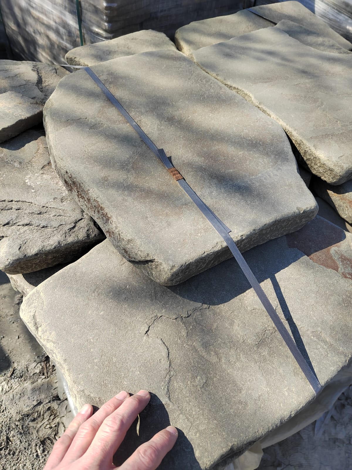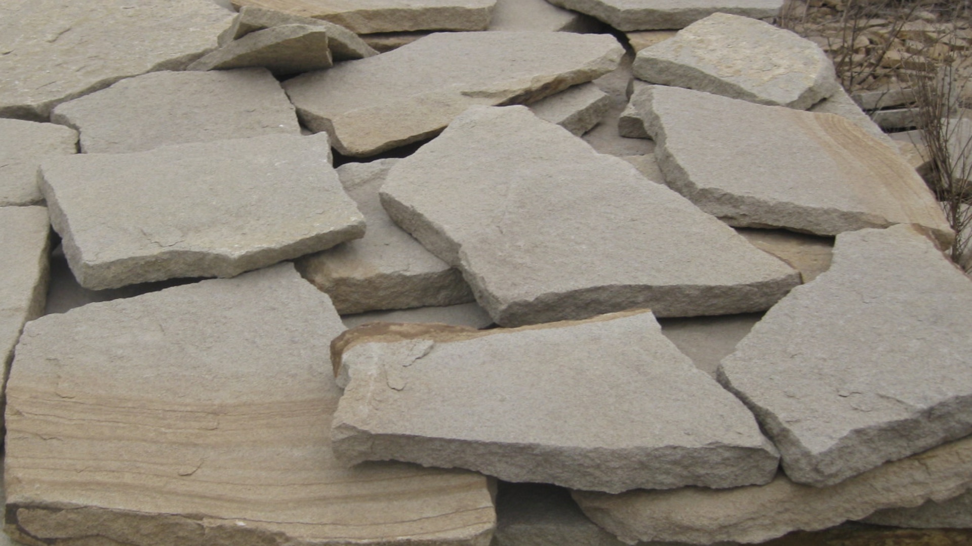 • Kamenclub.ru: Песчаник пластушка светло-серый (3,0 см)  купить в Электростали песчаник светло-серый, серый песчаник рваный ландшафтный колотый 13800 руб/м3   фото КАМЕНЬ КЛУБ