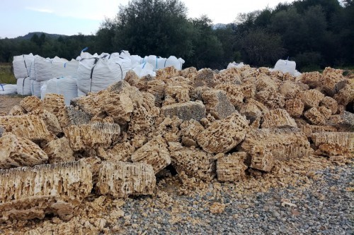 Мы обычно обсуждаем с клиентом возможность использовать манипулятор для перевозки и доставки тяжелых грузов. Можно и использовать фронтальный вилочный погрузчик. Также можно козловым краном. В связи с тем, что мешки могут весить до 1,5 тонн, будет при доставке и выгрузке камня будет необходима спецтехника