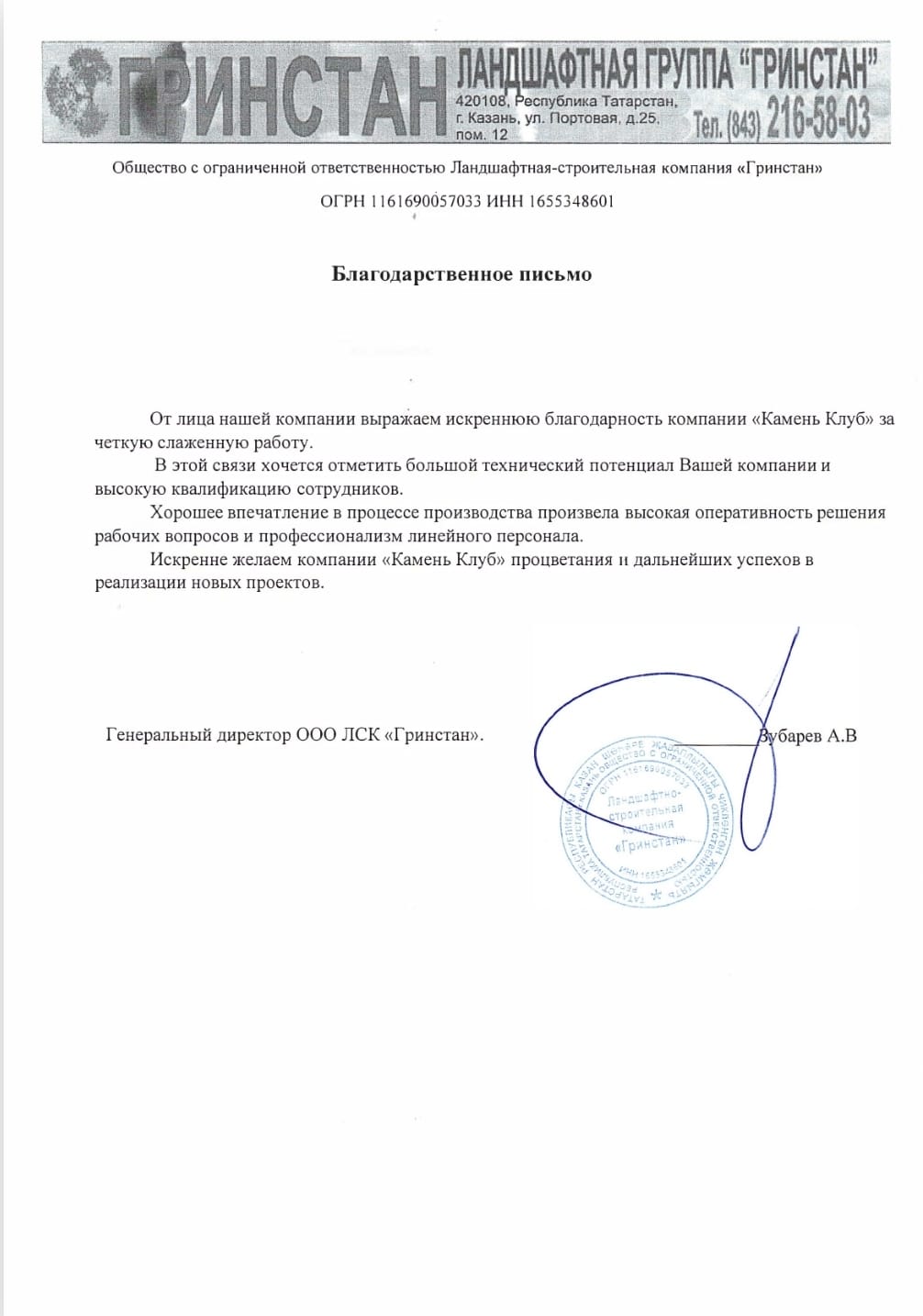 Рекомендательные письма клиентов Камень Клуб